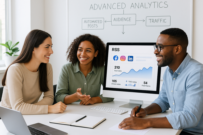 Zeit sparen und nie ein Update verpassen: Teilen Sie sofort die neuesten Artikel, Podcasts oder Videos von jeder RSS-Quelle an Facebook, Instagram, X, Tiktok und mehr-Freisprech und immer im Zeitplan.